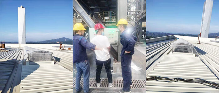 8月19日把產(chǎn)品發(fā)貨贛州,安裝人員 隨后趕至現(xiàn)場開安全教育會議,查看現(xiàn)場時(shí)發(fā)現(xiàn)廠房內(nèi)設(shè)備進(jìn)不去,鑫友們商議好布線方案經(jīng)電廠副總同意后開始施工布線。高度太高,從九層穿線至三層,安裝人員克服困難,倍道而進(jìn),爭取早日交付。